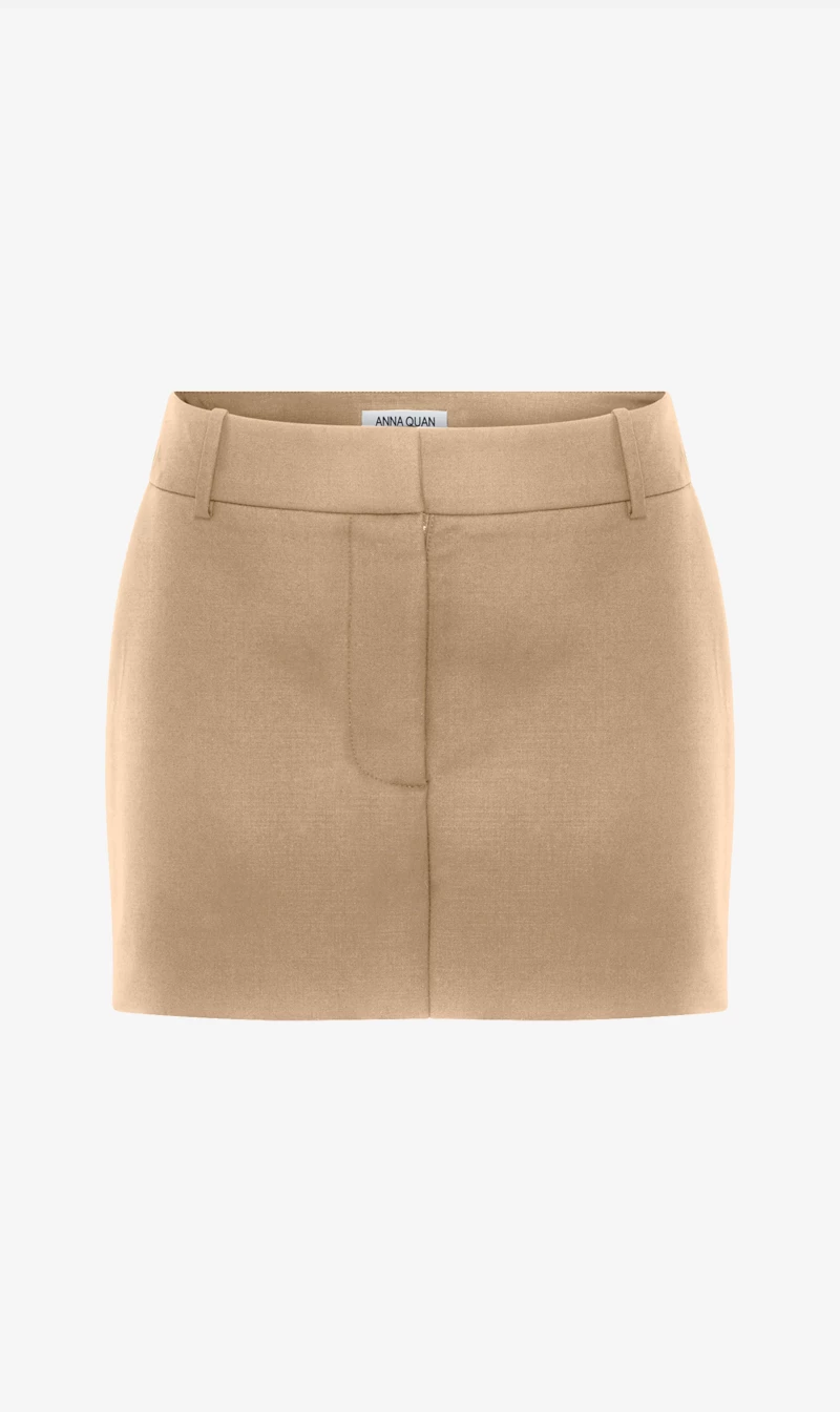 The Anna Quan Bethany Skirt in Nutmeg is a structured mini that nods to the best of the noughties. The Bethany skirt is cut in an Italian stretched wool that offers compact construction. Pairing classic tailoring with clean lines, this silhouette features a high hemline, low-rise waist and dart shaping for a smooth fit. Suit up with a structured jacket, or pair it back with a classic button up.Â