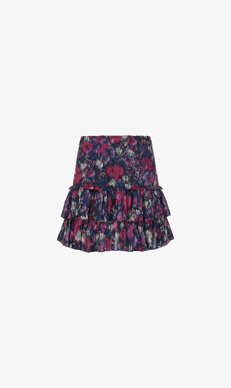 The Isabel Marant Naomi Skirt in Faded Night. A Short cotton skirt featuring Ruffles and smocks finished with a Zip fastening.