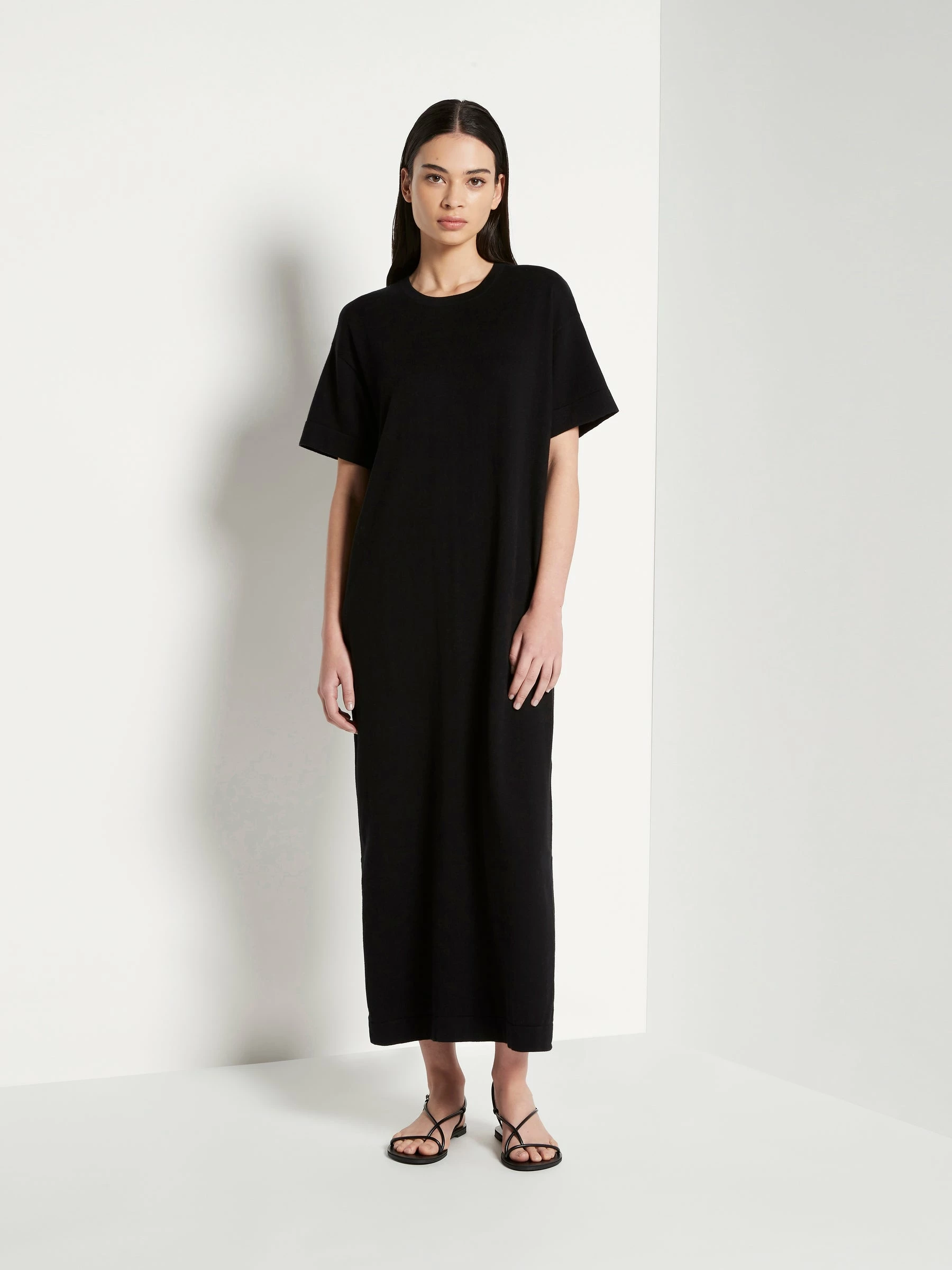 A simple and flattering style, the Long Box T Dress from JHL by Juliette Hogan features t-shirt style sleeves, side split detailing and a hem finishing at mid calf. Pair with sneakers for an easy look for every day. Bringing together the strength, stability and easy-care properties of cotton with the soft and unique handle of sustainable and traceable cashmere, this is a simple yet essential piece here to take the noise out of getting dressed.