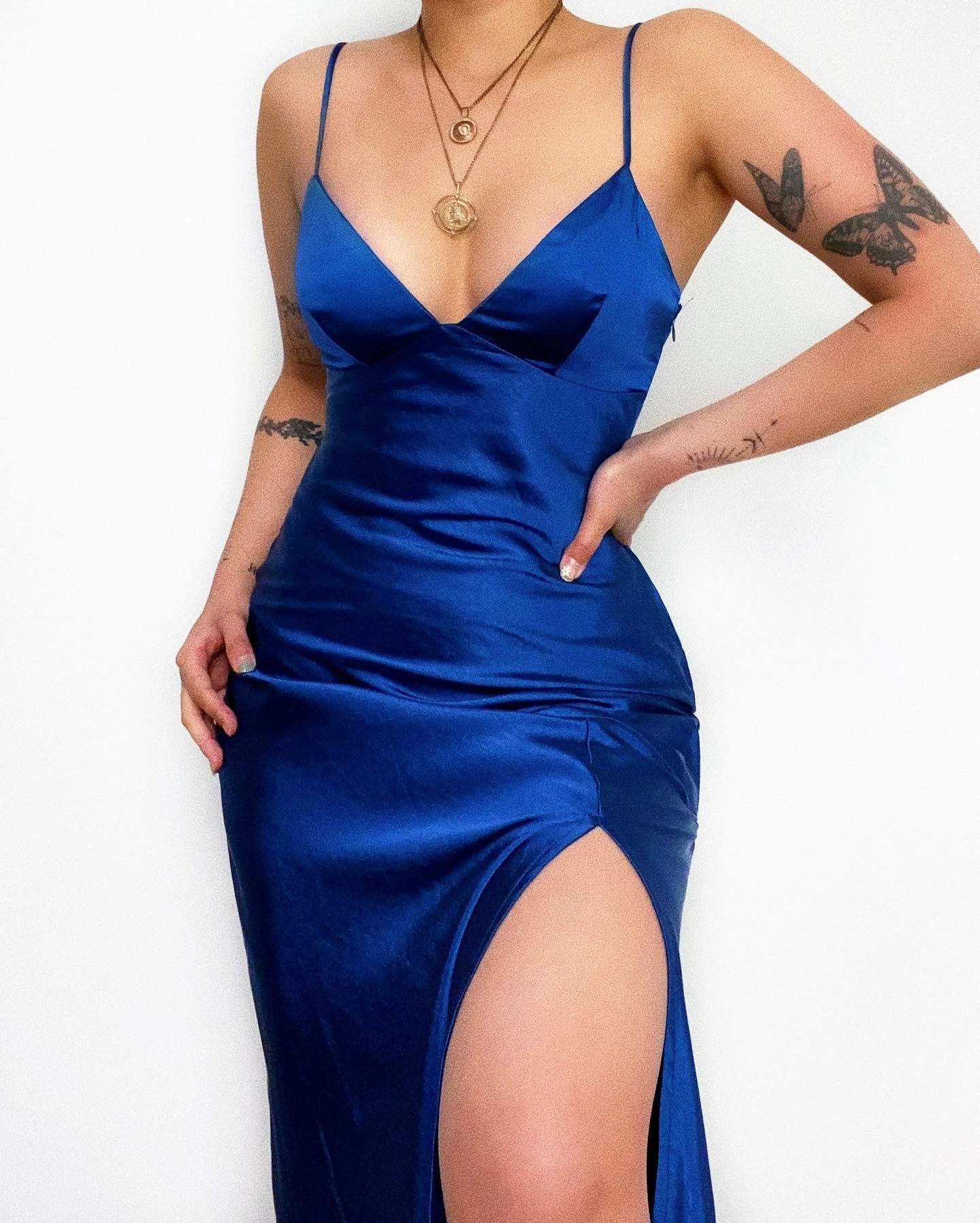 Kameli Boutique Celina Satin Midi Dress – Navy