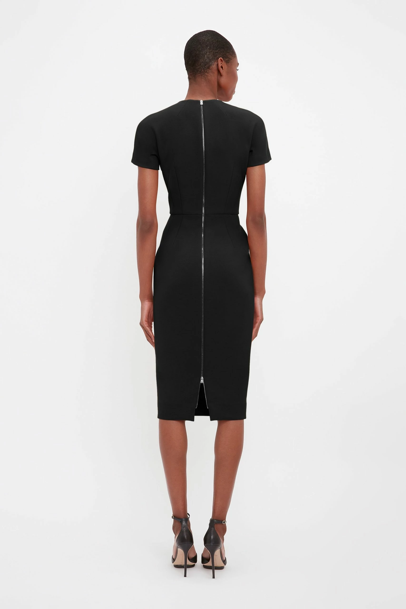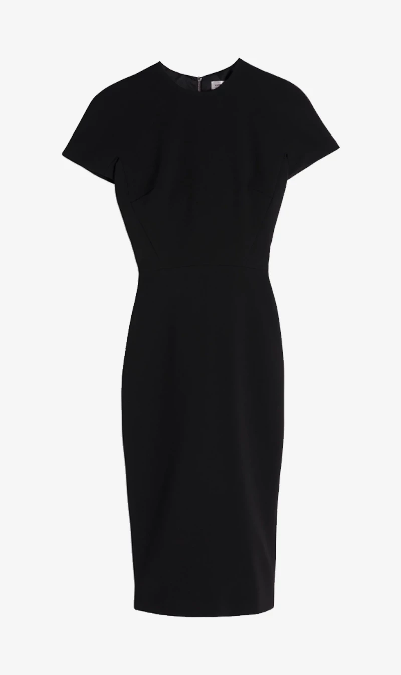 A Victoria Beckham signature, the T-Shirt Fitted Dress is inspired by the simplicity of a T-shirt but with an elegant twist. This dress brings a fresh approach to one of the brand’s signature fitted shapes and is crafted from a luxurious matte, bonded crepe fabric that offers a narrow, flattering fit, while a high neck and midi hemline create an elongated silhouette.