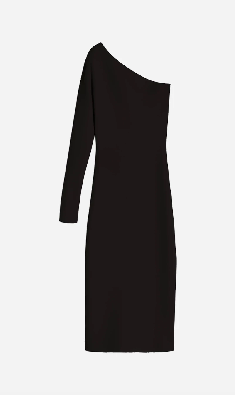 Made from a compact knitwear fabric with decent stretch, the VB Body One Shoulder Midi Dress by Victoria Beckham in Black is a modern wardrobe staple and a favourite of Victoria’s. Expertly constructed and meticulously designed, it has a form-fitting, one-shoulder shape that flatters the body. A high back slit allows for ease of movement. Pair with a strappy heel for pure elegance.Â